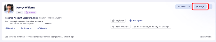 - If they have a verified email available, you will then be able to select the Nudge button from the profile card.