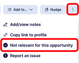 When reviewing a profile and the profile looks ok but cannot be considered due to a reason, then you should use 'Not relevant for this Opportunity'. Examples include talent located in the wrong location for the opportunity, was recently hired for another position, or may not have the right to work status being sought after.