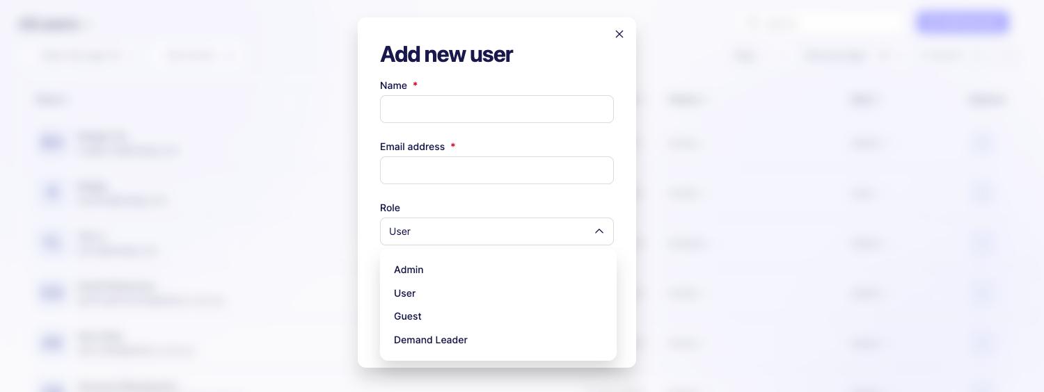 Enter the user's details. If you’re not sure what kind of permissions they need, check here.