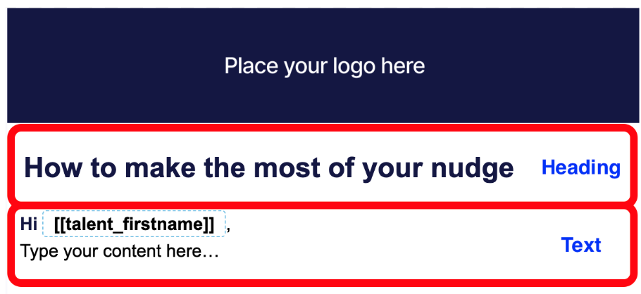 - Start by clicking on the bold heading in the Nudge template and rename to the desired heading title