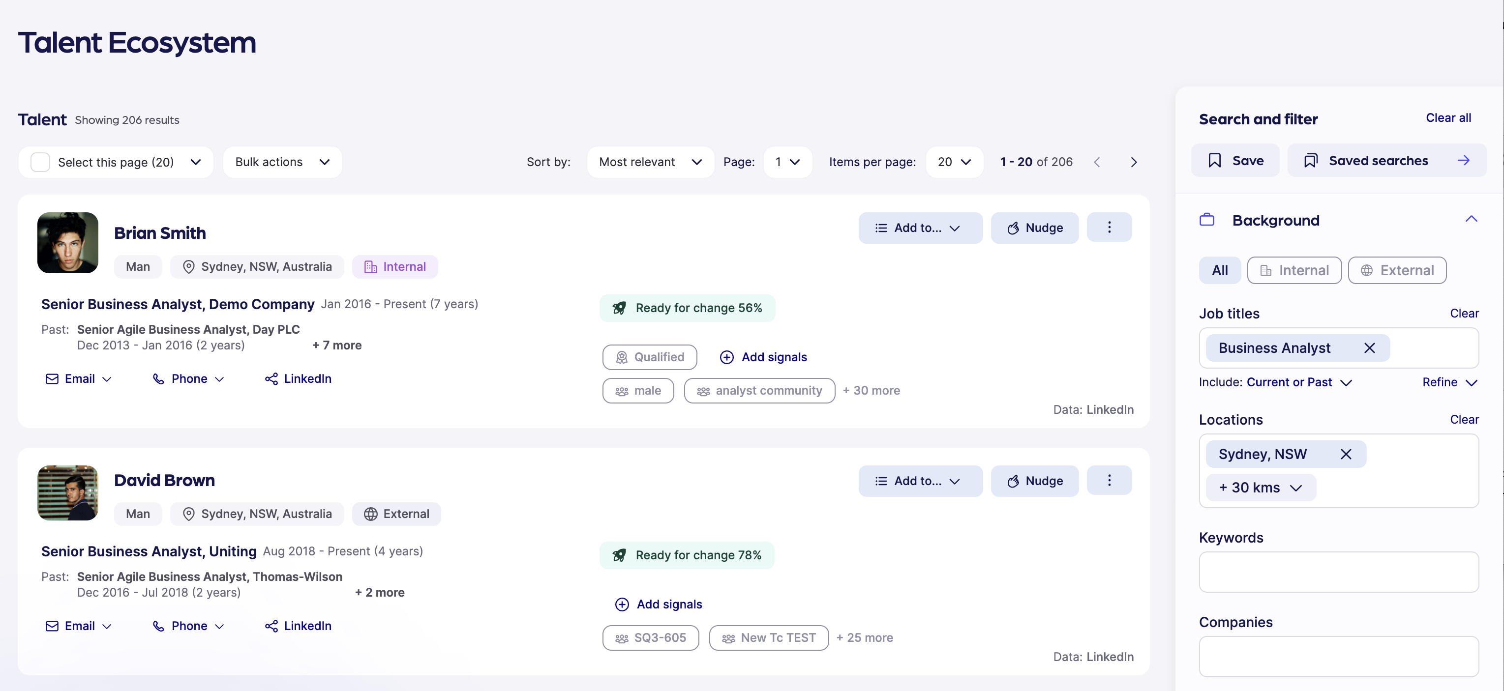 Sometimes you know what your ideal candidate looks like, but just haven't found them yet. Rather than having to repeat or rebuild your detailed searches, Reejig makes it super easy to save your filters and requirements. When you come back, we’ll have updated your results with new candidates who match your parameters.