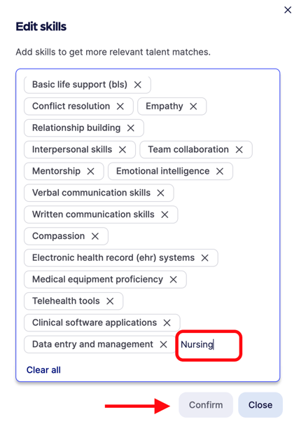 Remember to hit 'Confirm' after you have added you suggested 'Likely' skill(s)